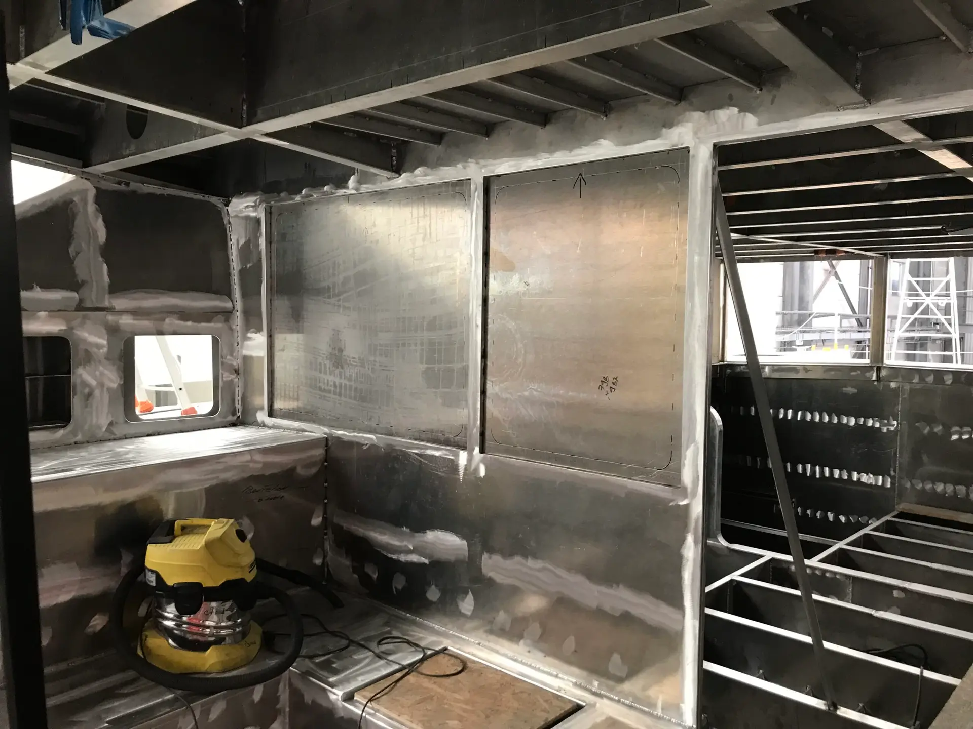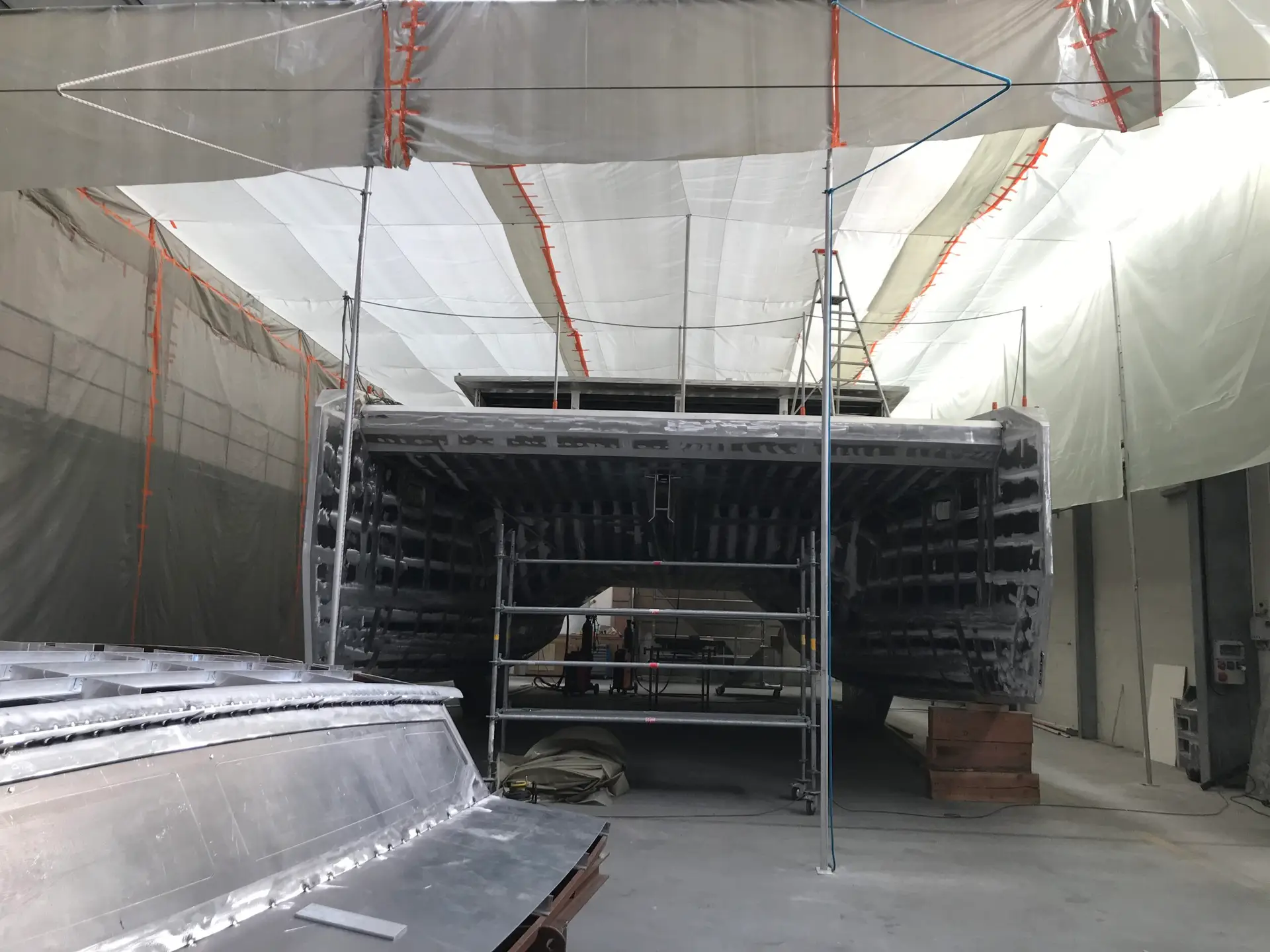 • Coque aluminium, état de chaudronnerie terminé, très beau travail de réalisation