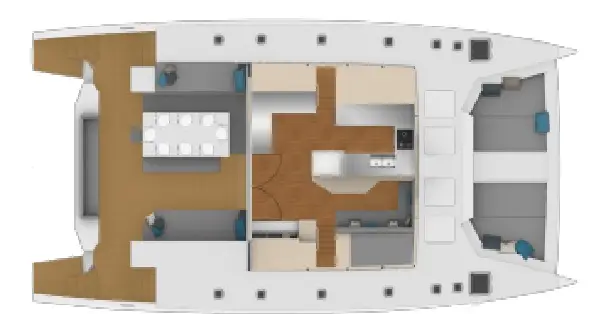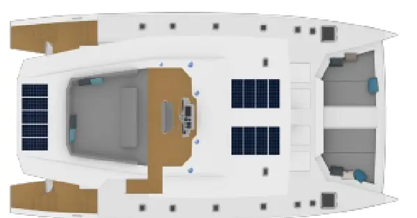 Ce catamaran s’adresse à un acquéreur souhaitant s’impliquer dans la conception de son bateau, avec une vision claire de son programme de navigation.