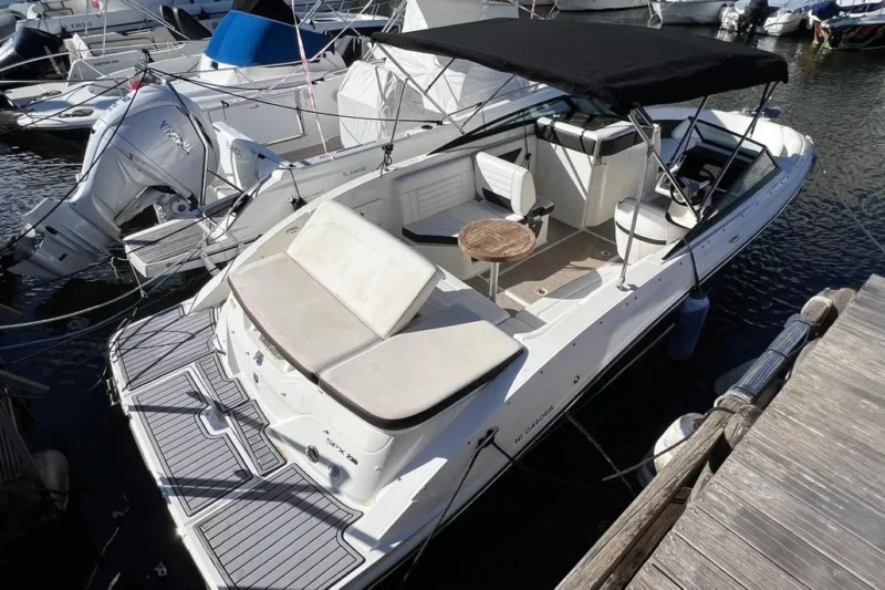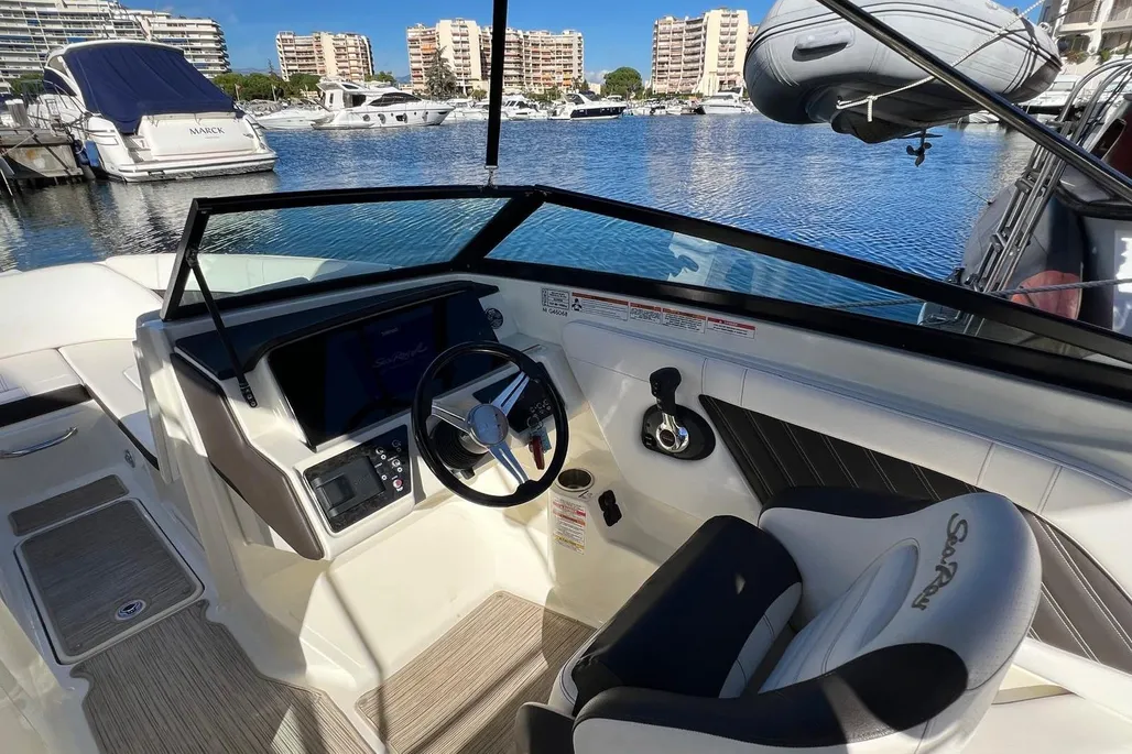Construit en 2020 par le chantier américain Sea Ray, il s’impose comme une référence dans la catégorie des day-boats premium.